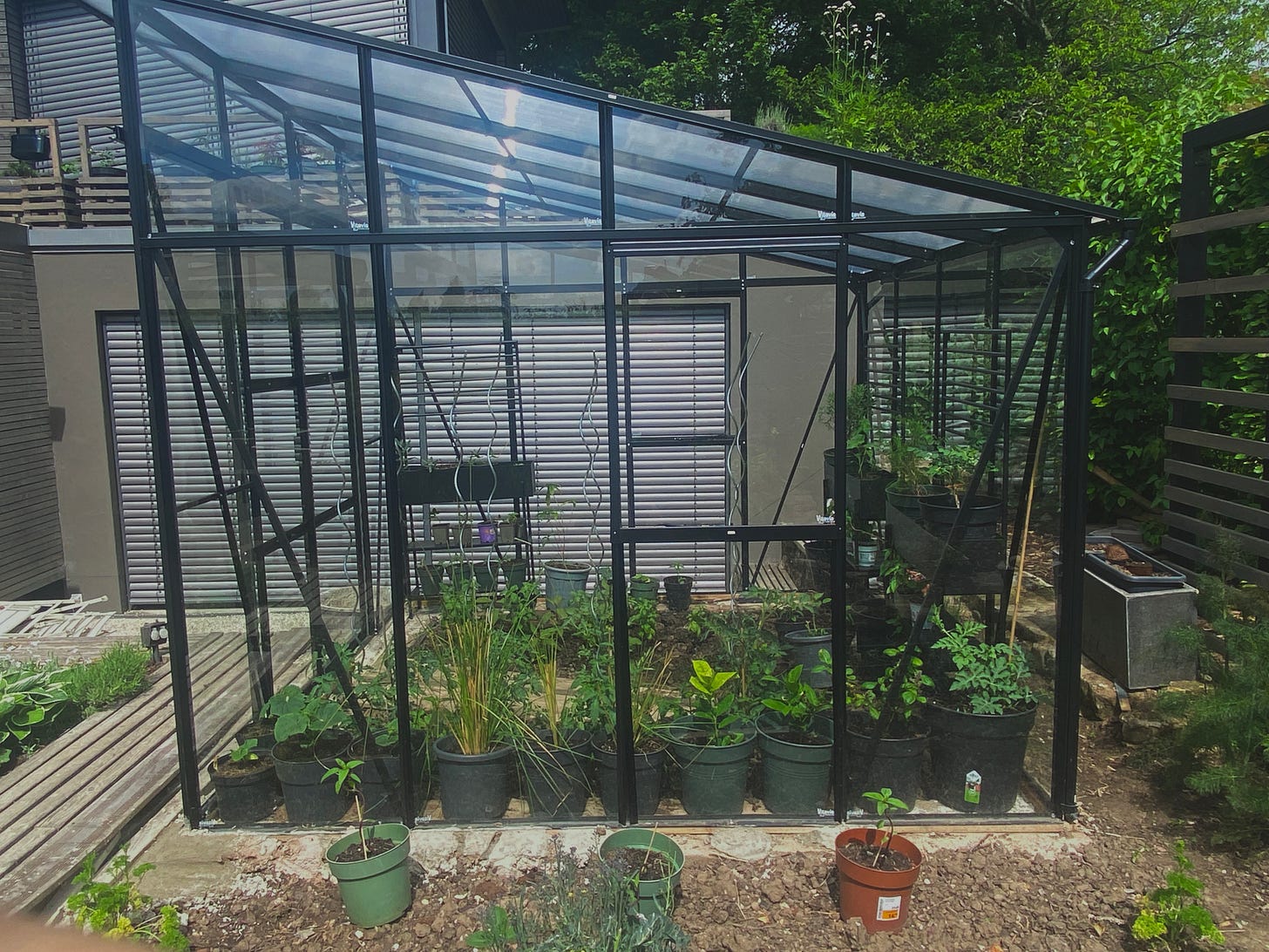 While I’m sure most of you reading me aren’t doing so just to keep up on my garden, I can happily report that we now finally have a greenhouse.