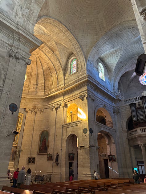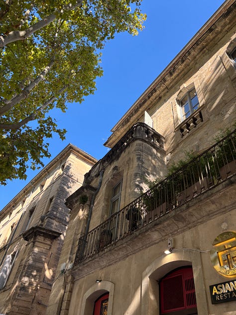 Towns like Uzès show this even better. Many of the buildings here were built in the medieval period and haven’t changed much — externally — since then. Inside them, of course, you can find remnants of their earlier incarnations and imaginings, apartments re-created from older apartments that were themselves re-creations. Successive generations build from the ruins, shore them up, make them less like ruins, give them life, pass them along down to us.