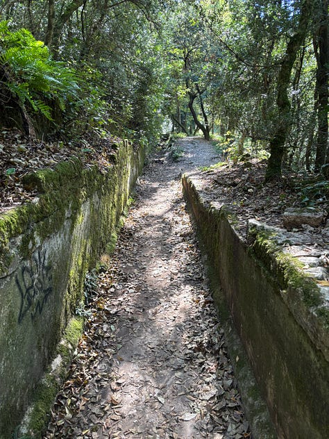 Missing the obvious ruins like that, though, was only possible because the ruins themselves still live as other things. Being flat and paved, that section of the aqueduct is the primary path along the river in many places. It was an aqueduct, now it’s a walking trail, a ruin alive in another purpose.